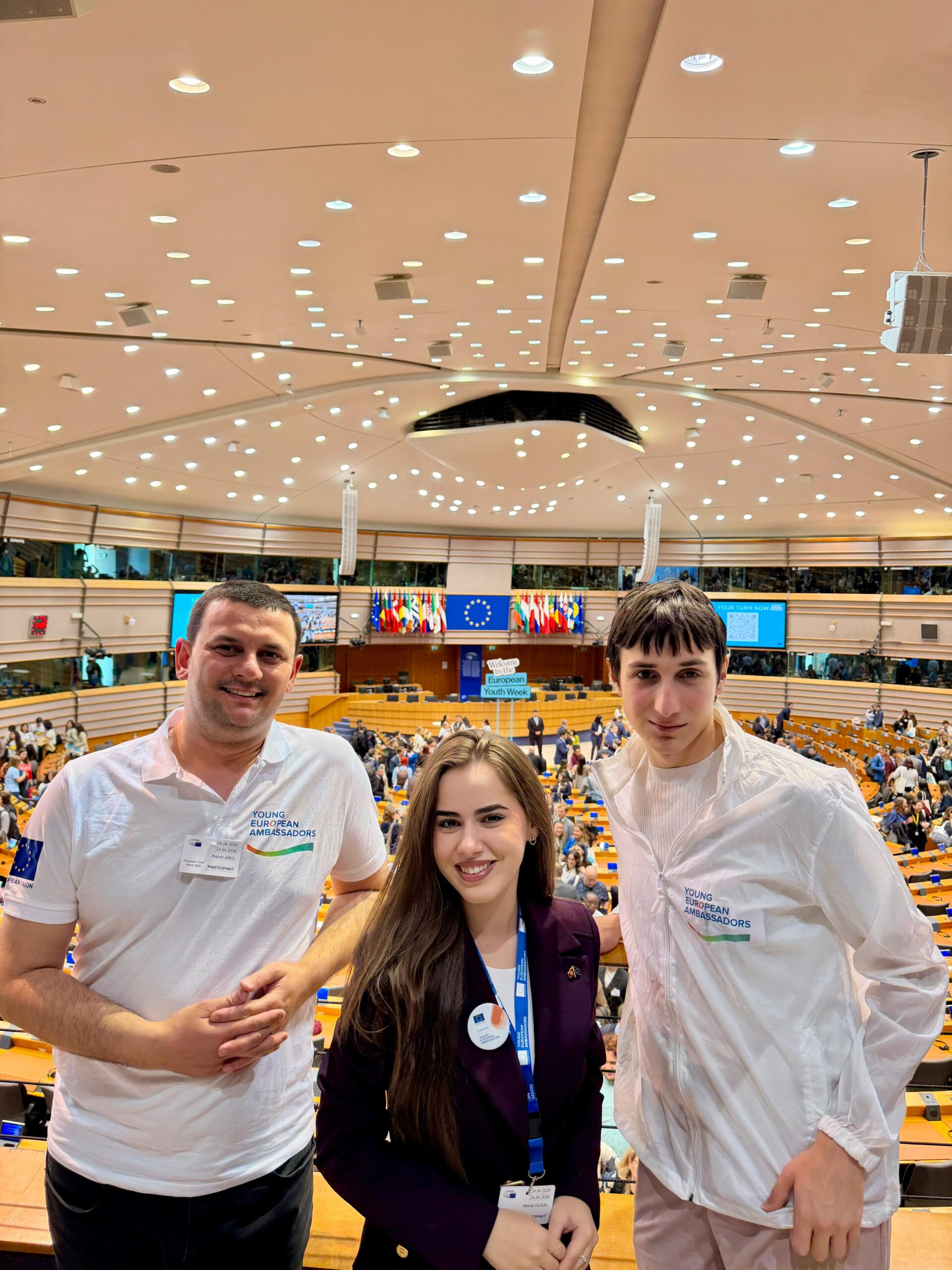During 24–25 April, three Young European Ambassadors from the Western Balkans, Kejvin Jaku, Merita Dukaj, and Sava Dokmanovic, took part in this vibrant gathering, contributing directly to the program by facilitating a workshop titled “Generation Enlargement: How youth can shape the future of enlargement and democracy?” Through presentations, an EU enlargement quiz, and an interactive activity called “Merging the Future,” the session invited participants to actively engage in discussions around EU enlargement. The high-level event opened with a ceremony held in the hemicycle of the European Parliament in Brussels. The setting itself created a powerful sense of occasion, placing young participants at the heart of European decision-making spaces. The ceremony concluded with a live violin performance, adding a cultural and emotional dimension that set the tone for the day ahead.