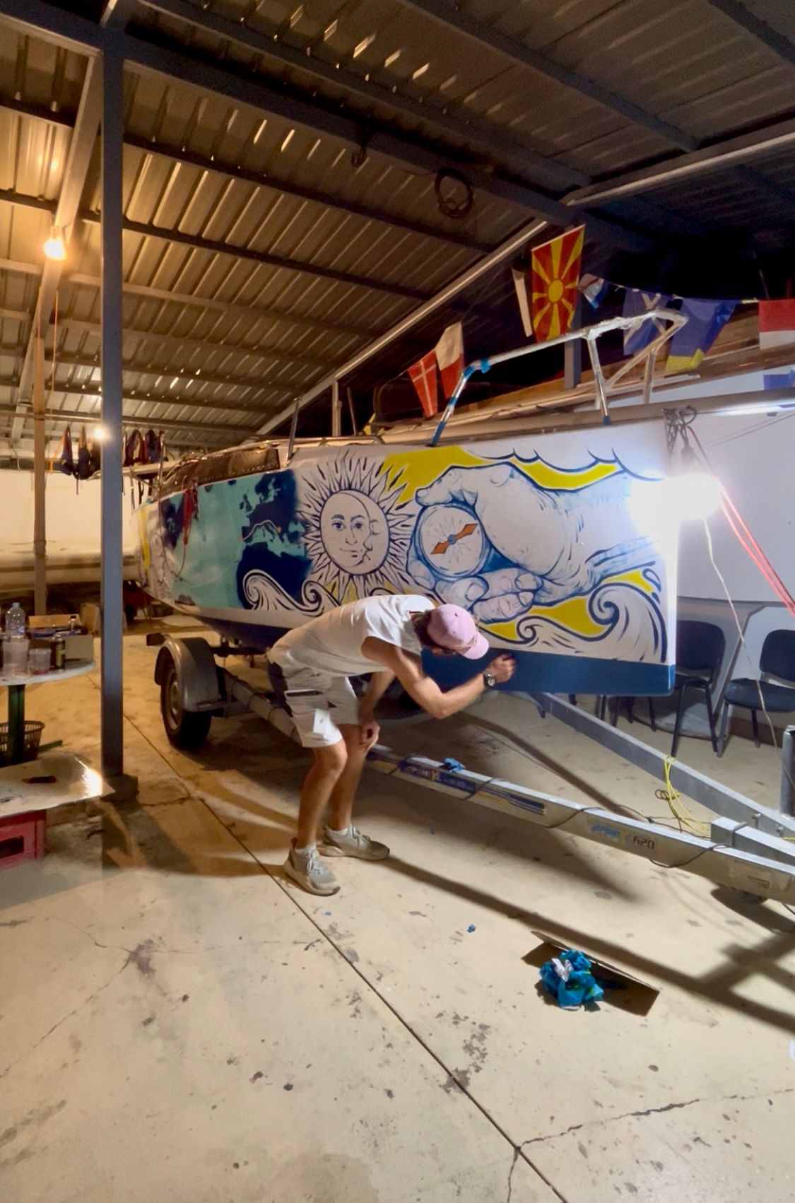 Crucial parts of Pixel are built out of wood planted by Luso’s grandfather in the backyard of his home in Struga. The process of building the boat himself has been grounding and emotional for Erdal — offering him the chance to reflect on how water and land are intertwined — giving him a chance to explore his own roots and memories. In his own words, it’s a beautiful thing to know that a piece of land, a tree that grew in their yard, will soon accompany him in his solo-sailing across the Atlantic.